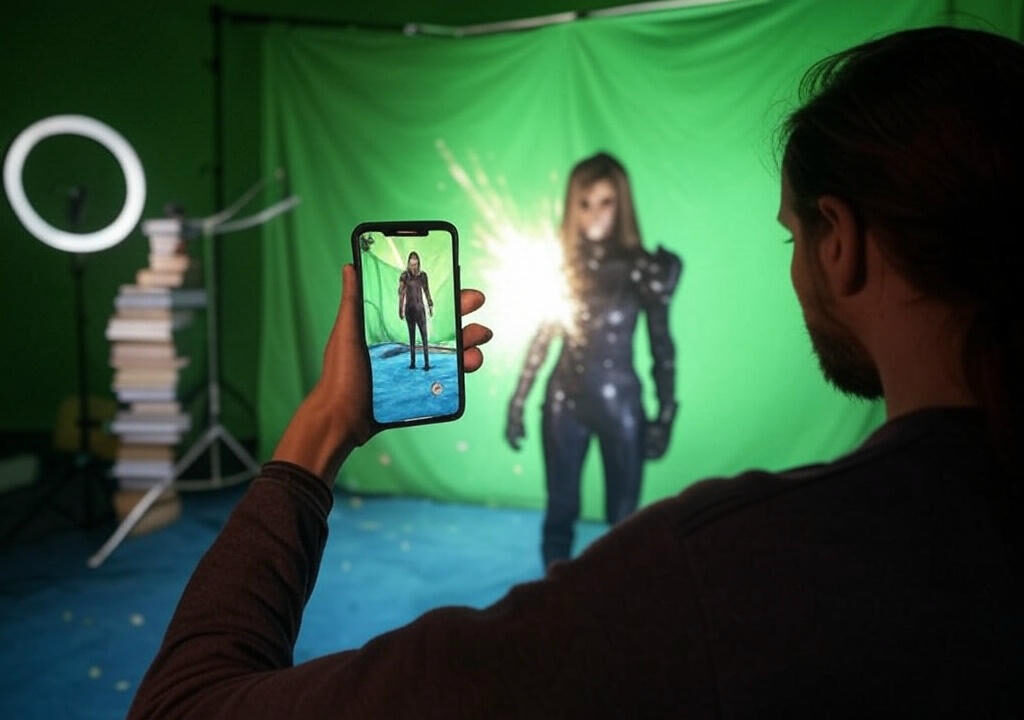• Green Screen at Home: Hang a green sheet and use free apps like CapCut to replace the background with a cityscape or outer space.