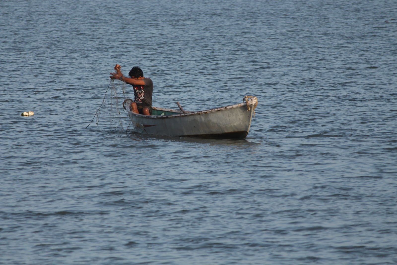 On the fourth day, while strolling by the ocean, I noticed a fisherman on his boat, casting nets. I’d seen him before, but always far out at sea. Intrigued, I grabbed my camera to capture his craft.